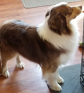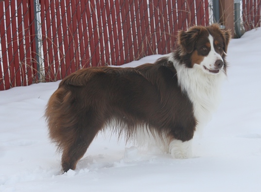 He has very nice bone and movement. Flashy Red tri. Rudy is the same breeding as GCH CH Deja Vu, aka Deja.